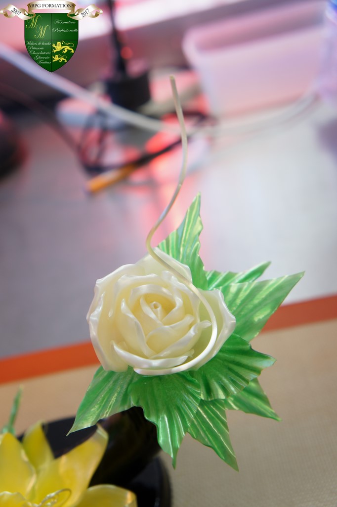Vous réaliserez lors de ce stage de deux jours une pièce en sucre tiré.